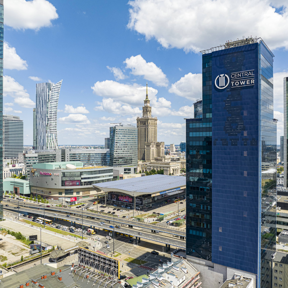 Central Tower is a 26-storey skyscraper located in the very city centre. It is close to important transport, such as the Warsaw Central railway station, numerous bus and tram lines as well as metro stations. In its immediate area there is also a wide range of services, a shopping centre, hotels, medical clinics, fitness clubs and extensive cultural attractions.
